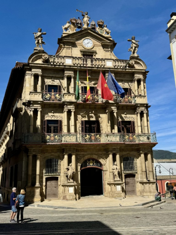 Die erste Etappe unserer Rückreise geht, mit Zwischenstopp in Pamplona, durch die Pyrenäen nach Saint-Jean-Pied-de-Port. Nach einer Stunde Fahrt rollen wir den Berg hinab nach Pamplona rein. „Was für ein Moloch“, denken wir, denn wir sehen ein Meer aus Hochhäusern und hoffen, dass der erste Eindruck trügt und die Stadt wirklich sehenswert ist. Industrie und moderne Wohnanlagen prägen das Außenbild der Stadt.