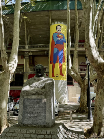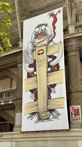 Die Kathedrale ist nicht so imposant wie die in Burgos oder León aber auch schön anzusehen. Allerdings verlangen sie 5€ Eintritt pro Person, weshalb wir weiter zur Stierkampfarena auf dem „Plaza de Toros de Pamplona“ ziehen. Langsam schmerzen die Füße und wir setzen uns in den Schatten der Erlen. Was hier wohl bei der „Fiesta Sanfermines“, dem bekannten Stiertreiben los ist? Eine sonderbare Tradition, die zweifellos umstritten ist und bei der nicht nur die Stiere ums Leben kommen sondern jedes Jahr auch mehrere Hundert Menschen verletzt werden.