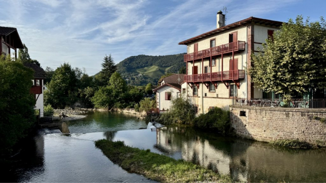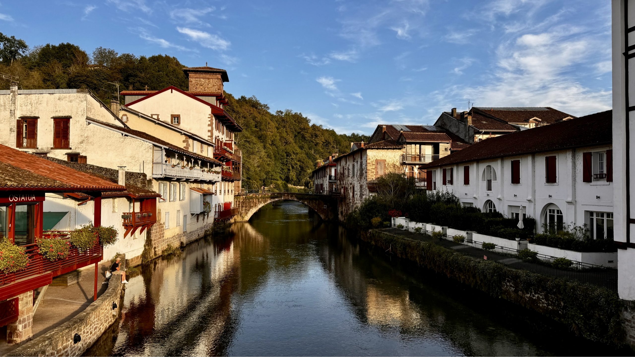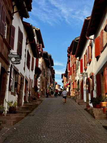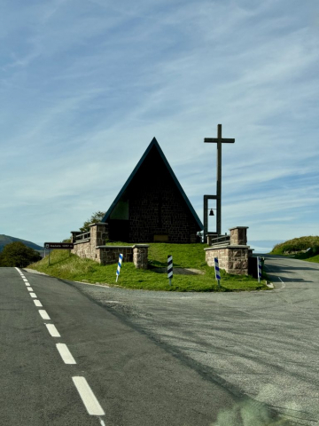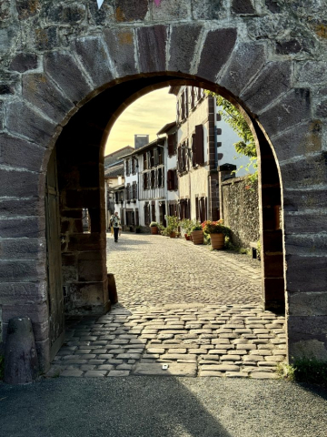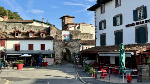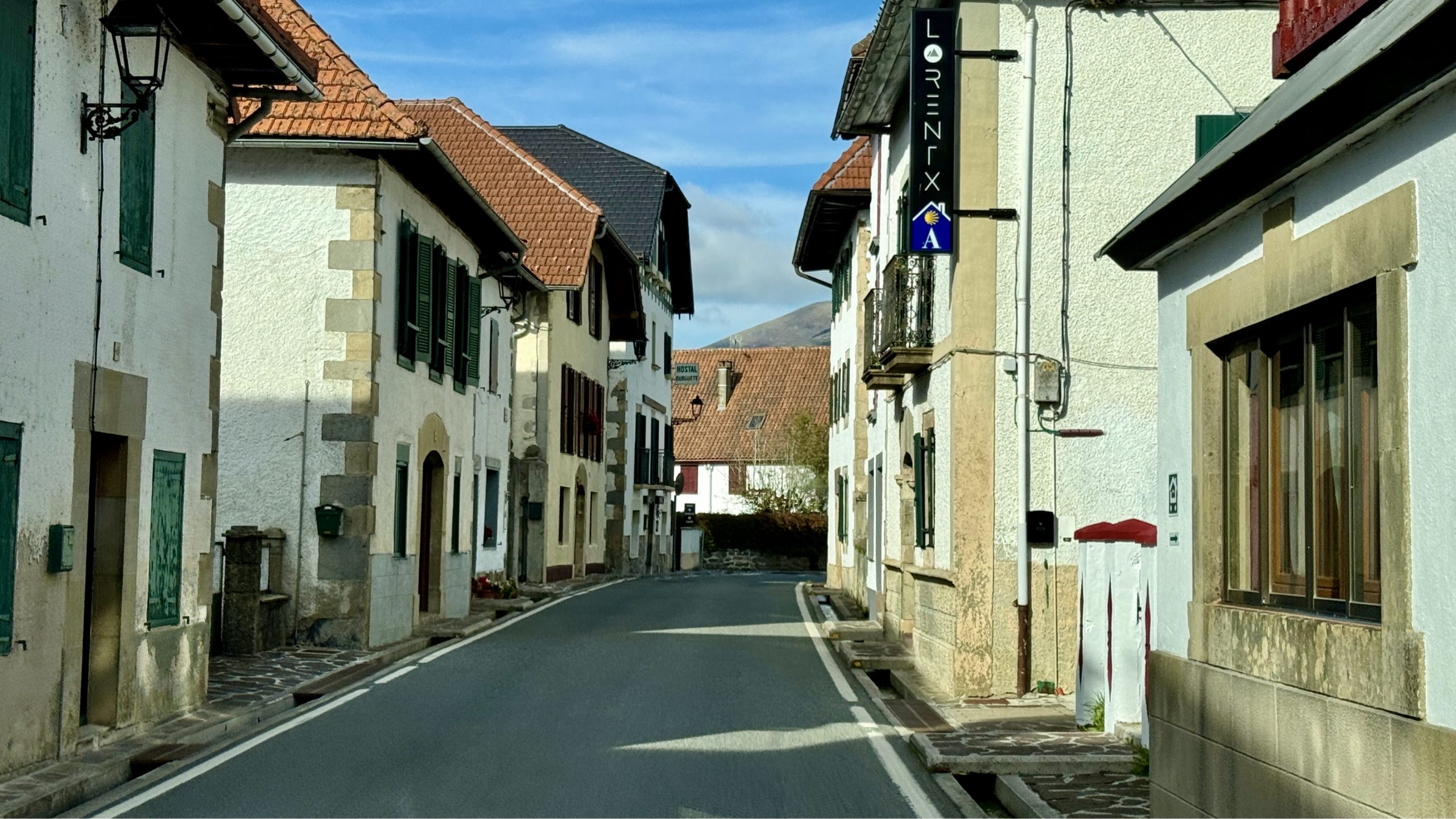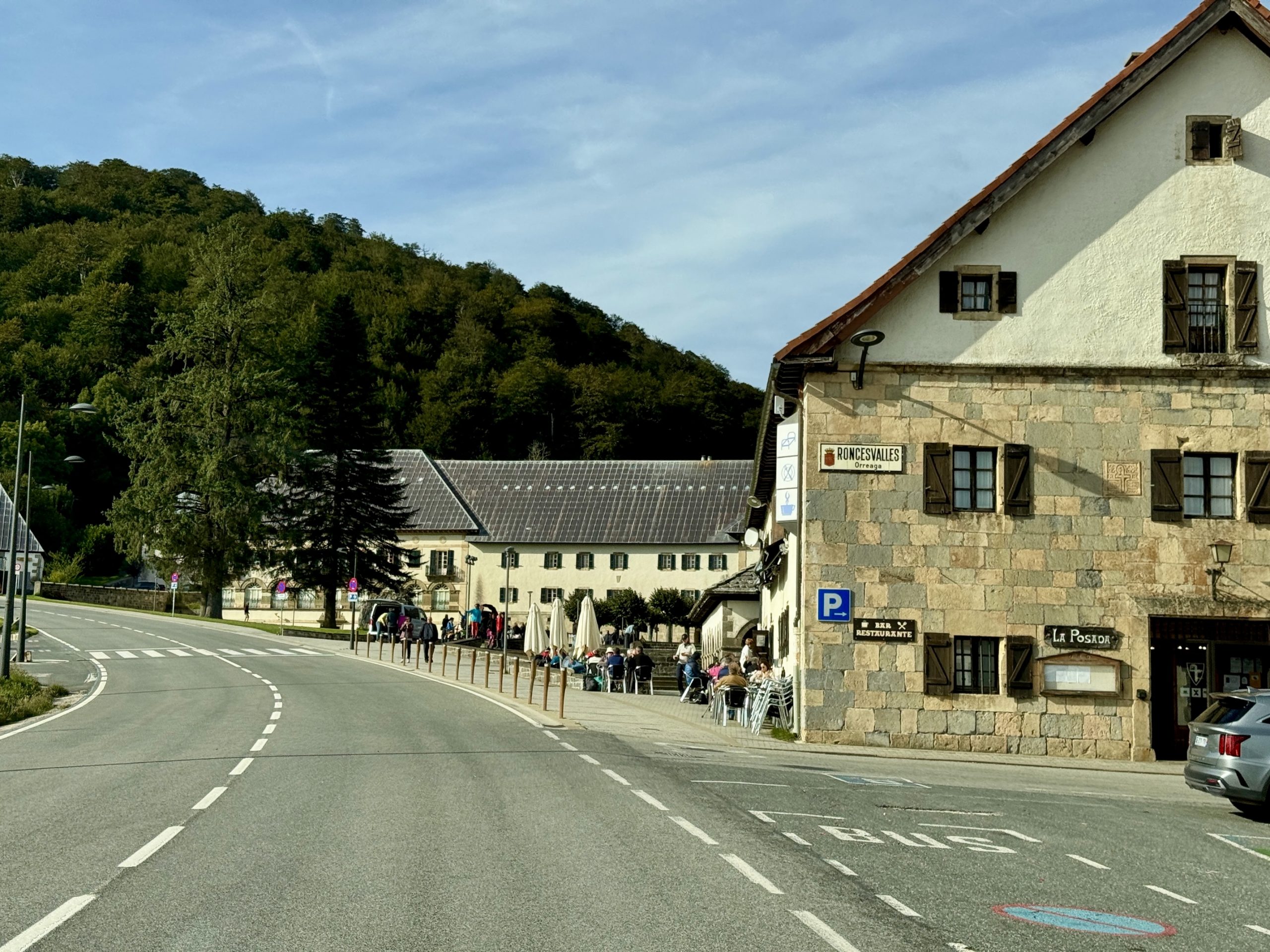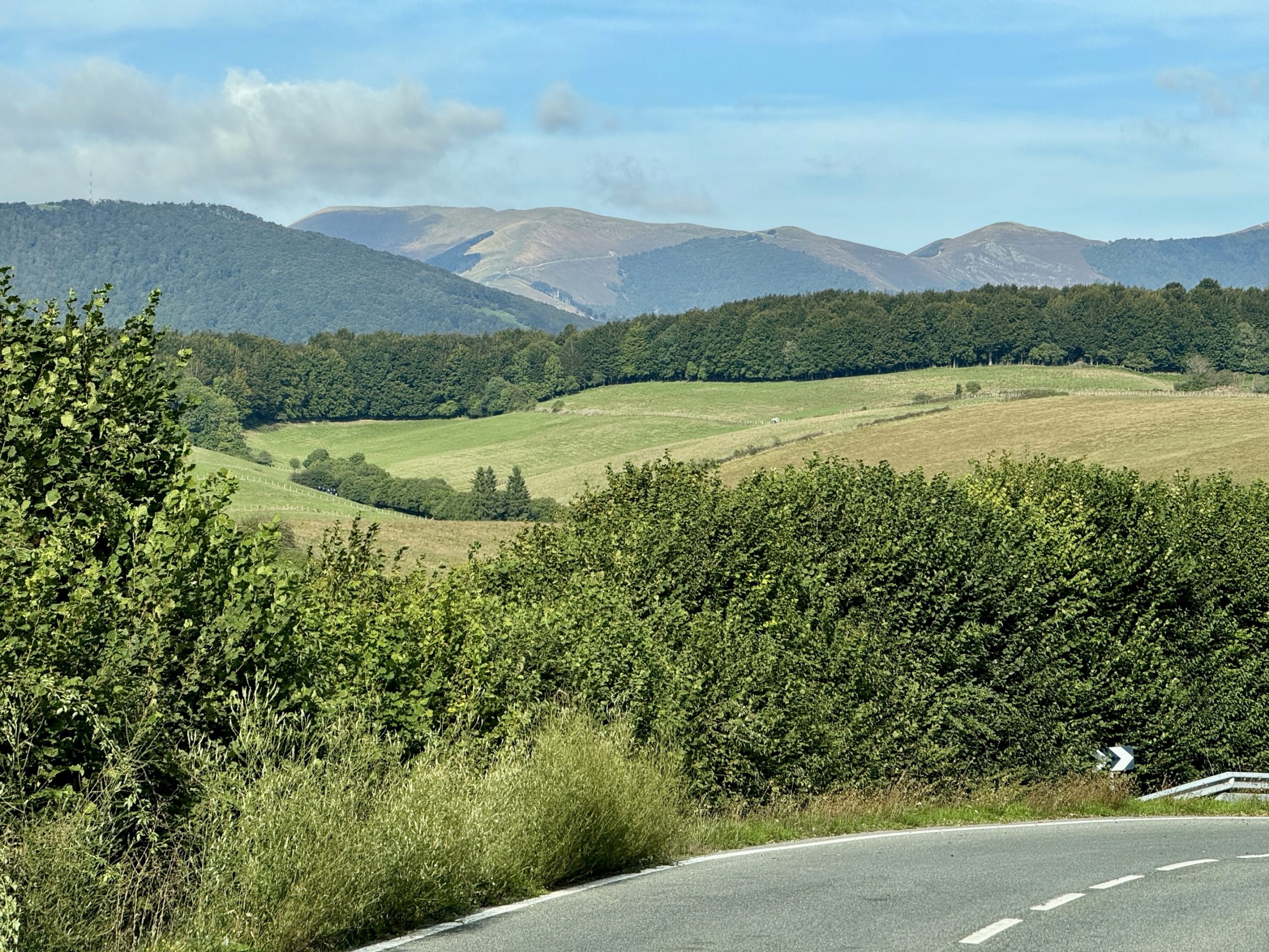Unser Weg geht jetzt bergauf und bergab durch die Pyrenäen und entlang des Caminos nach Saint-Jean-Pied-De-Port, wo wir gegen 18:00 Uhr ankommen. Der Ort ist klein, umgeben von einer alten Stadtmauer und der Startpunkt des Camino Francés. Der Name „Pied de Port“ – am Fuße des Passes kommt nicht von ungefähr, denn hier beginnt die erste Etappe über den Ibañeta-Pass auf 1.057 Meter Höhe nach Roncesvalles. Die Pilger folgen dabei den Spuren von Karl dem Großen, der bei seinem Feldzug im Jahr 778 Spanien erreichte.