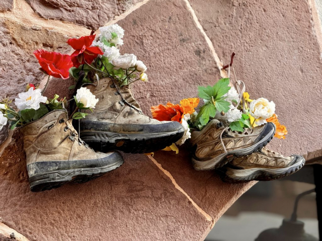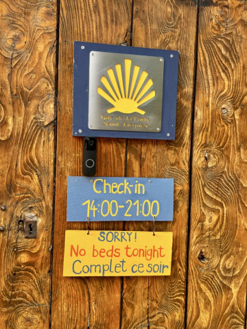 Wir laufen durch den Ort, mit seinen kleinen Gassen. Trotz der „späten“ Stunde herrscht noch reges Treiben. In roten Sandstein gehauene Jakobsmuscheln zieren Portale, Giebel und Fensterstürze. Gelb und blau markiert die Muschel die Pilger-Herbergen welche bereits ab zehn Euro eine einfache Unterkunft im Schlafsaal oder in Hängematten gewähren. Am Pilgerbüro bildet sich eine lange Schlange: Die einen wollen noch einen Stempel für ihren Pilgerausweis, andere Ihre Startunterlagen und wieder andere suchen verzweifelt eine Unterkunft für die Nacht. In den Geschäften decken sich Pilgerwillige mit entsprechender Ausrüstung ein und in den Restaurants gönnt man sich noch mal ein ausgiebiges Mahl, bevor es morgen losgeht.